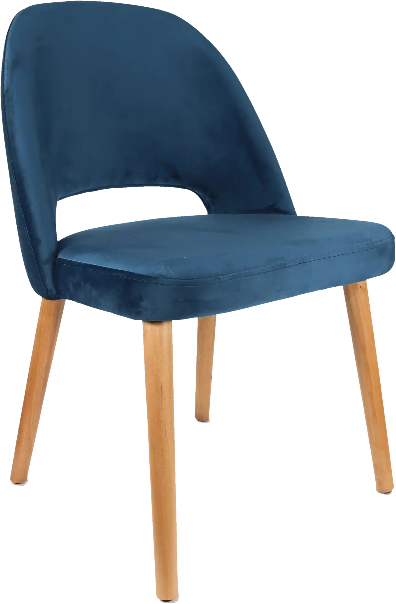 HomeChair FL Semifreddo Velvet Upholstered Timber Legs Hospitality Chair – Denim / Trojan Oak