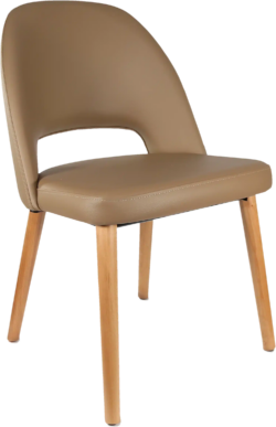 FL Semifreddo Vinyl Upholstered Timber Legs Hospitality Chair – Taupe / Trojan Oak