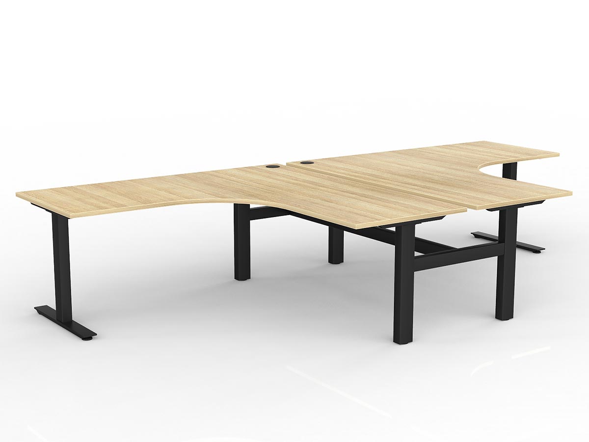 OL Agile 90° Shared Workstation – Oak Top With Black Base – Without Cable