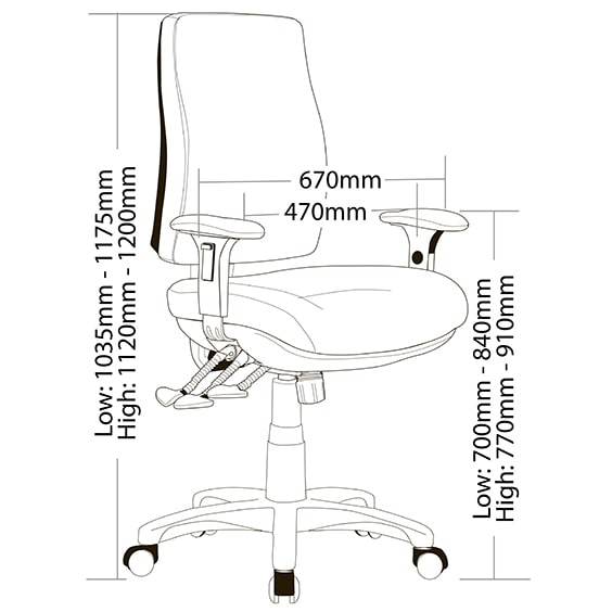 FEATURES: Adjustable seat height Adjustable seat and back angle Adjustable weight tension Adjustable seat depth (seat slider) Available in high